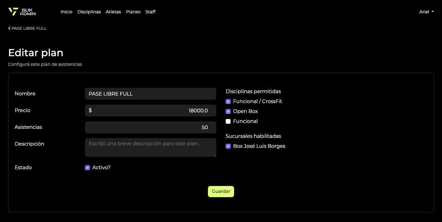 No hay restricciones en cuanto al número de planes que puede crear cada gimnasio, y los planes pueden configurarse para aplicarse de manera global o para una sucursal específica.